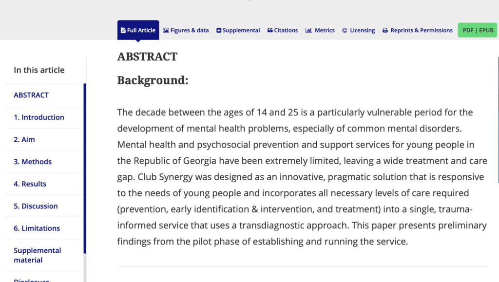ახალი სტატია: „საქართველოში ახალგაზრდების ტრანსდიაგნოსტიკური ფსიქოსოციალური პრევენცია-ინტერვენციის სერვისი: ეფექტურობის კვლევის ადრეული შედეგები“