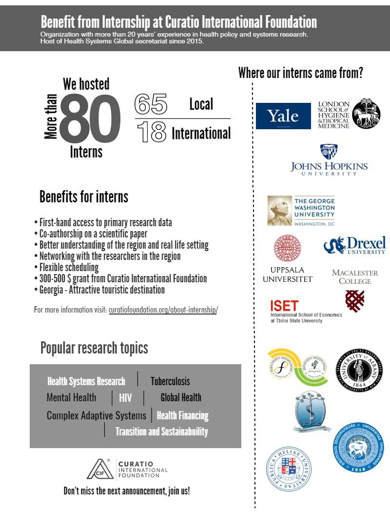 Interns will benefit from mentorship by senior researchers, gain experience in systematic evidence synthesis, and contribute directly to policy-relevant research on NCDs in Georgia.