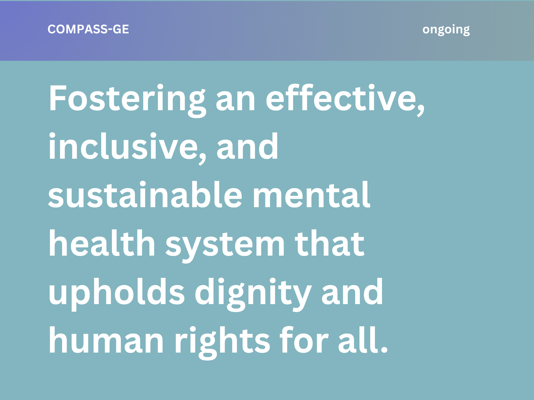 Duration: 1 November 2024 – 31 October 2028 Introduction and Overview The Comprehensive Approach to Integrated and Accessible Mental Health in Georgia (COMPASS-GE) project aims to systematically strengthen Georgia’s mental